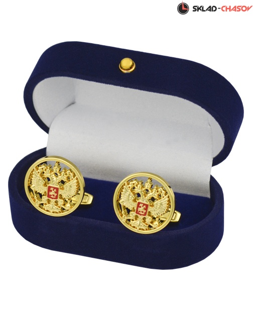 Мужские запонки «5566» - отличное дополнение для делового костюма любого стиля. Запонки выполнены в виде небольших круглых пуговиц в форме герба Российской Федерации со специальным покрытием под желтое золото. В качестве основного материала изделия используется латунь, благодаря чему такие запонки приятны на ощупь, не деформируются под легкими внешними воздействиями и не подвергаются коррозии. Представленная модель поставляется в темно-синем бархатном чехле, вследствие чего изделие станет не только отличным приобретением как аксессуара для собственного пользования, но и прекрасным вариантом в качестве подарка для любимого человека, отца или брата.