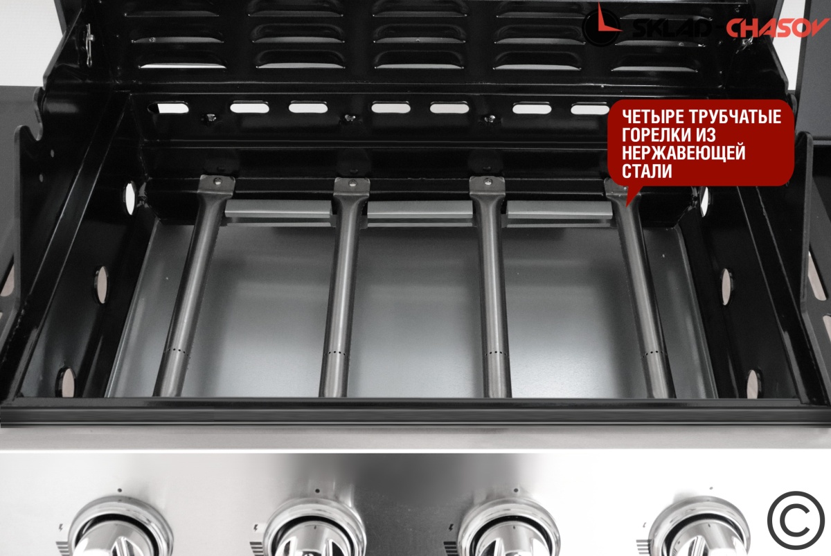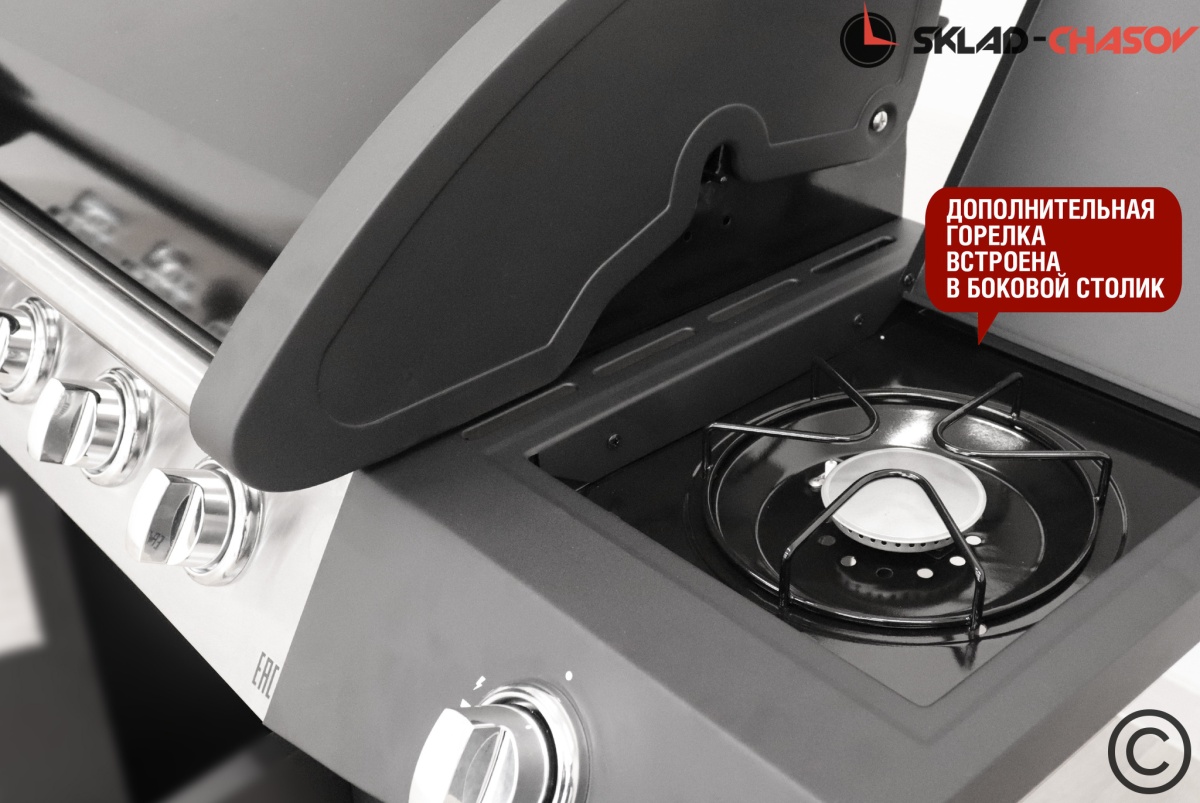 Четыре горелки и большая площадь жарочной поверхности дают простор для кулинарного творчества. Боковой столик удобны для приготовления и сервировки блюд.