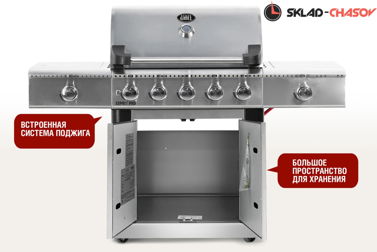 Газовый гриль Esprit Pro удачно впишется в летнюю веранду или открытую зону отдыха. Светодиодная подсветка ручек придает эффектный внешний вид. Привлекательный дизайн, корпус из нержавеющей стали, расширенный функционал и высокие технические характеристики причисляют данную модель к эталонному уровню товаров BBQ отрасли.