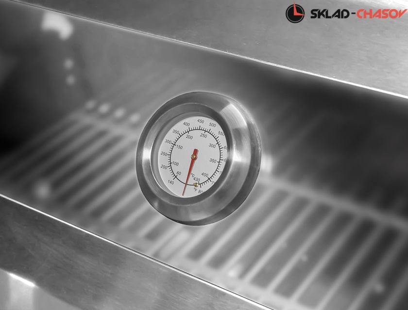 • Встроенный термометр поможет установить нужный температурный режим для вашего блюда и поддерживать его в процессе готовки.