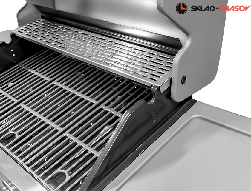 • В крышке установлен отражающий экран, который снижает теплопотери. Такая конструкция позволяет поддерживать высокую температуру в гриле даже в холодную погоду, а также снижает вероятность ожогов, ведь крышка меньше нагревается снаружи.