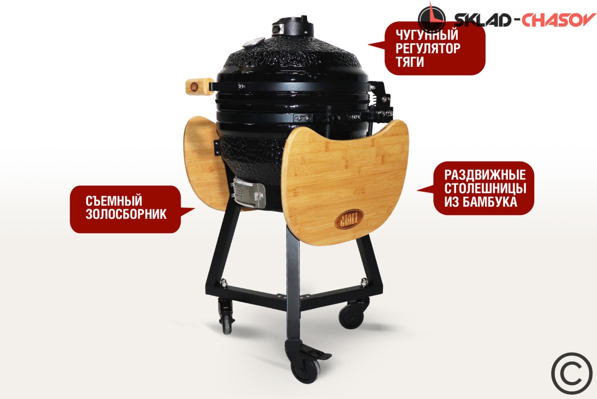 Керамический гриль SG 16 PRO Black от Start Grill черного цвета относится к премиальной линейке семейства керамических грилей Start Grill.