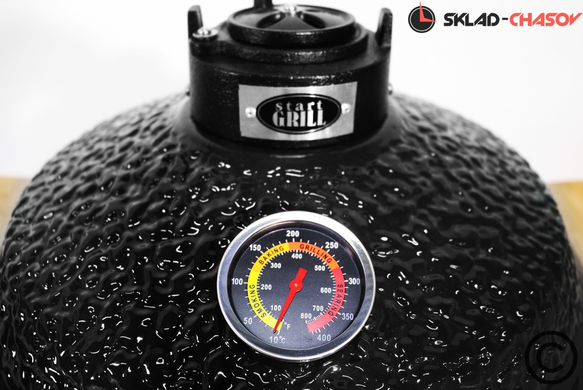 Черный гриль Start Grill SG 16 PRO Black одновременно сочетает в себе функции гриля, барбекю, мангала, коптильни, духовки, печи для пиццы и тандыра. Гриль выполнен из экологически чистой толстостенной керамики и очень прост в использовании, потребуется совсем немного времени, чтобы подготовить его к работе и начать готовить настоящие кулинарные шедевры. Установленный на крышке гриля высокоточный термометр позволит вам контролировать температуру внутри гриля. Уже входящие в комплект камень для пиццы с держателем, решетка на второй уровень позволят вам разнообразить свои кулинарные шедевры, а фирменный чехол сохранит ваш гриль в первозданном виде на долгие годы.