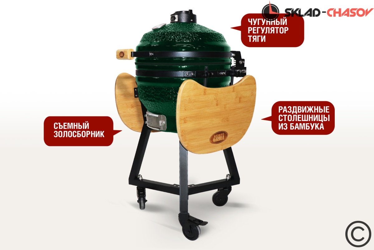 Керамический гриль SG 16 PRO от Start Grill зеленого цвета относится к премиальной линейке семейства керамических грилей Start Grill.