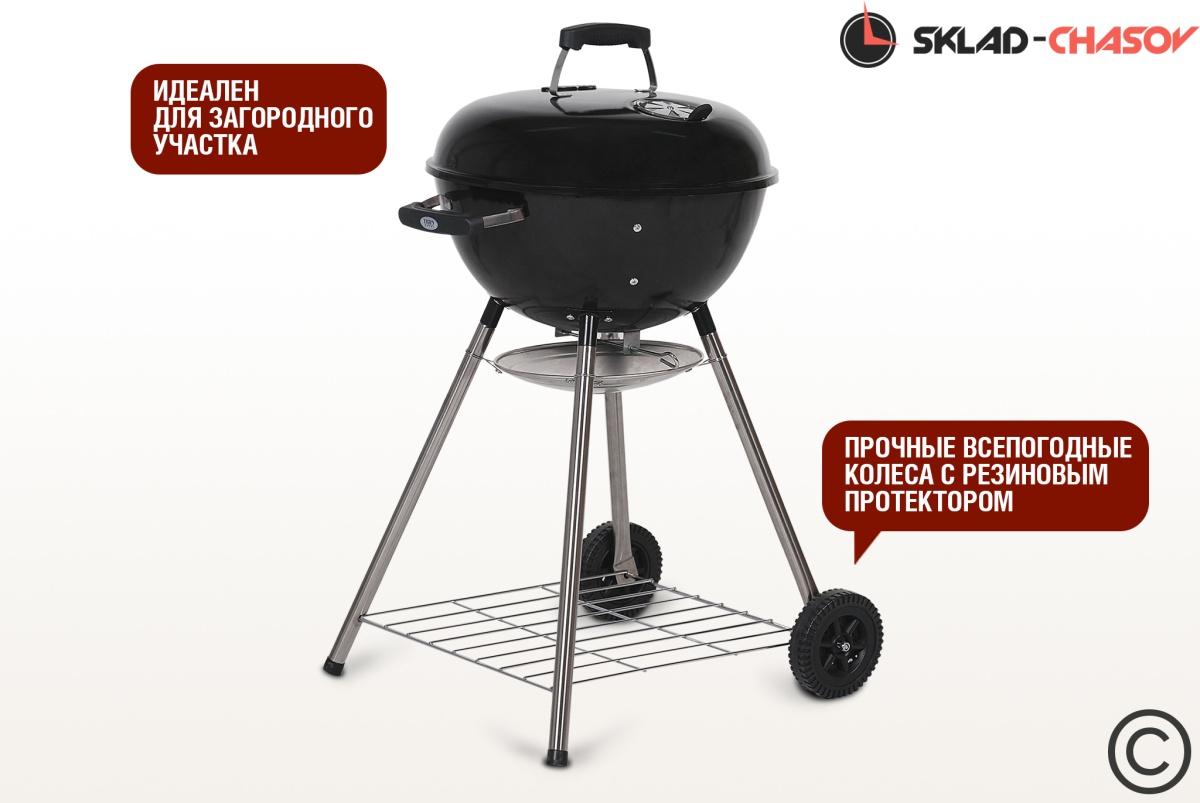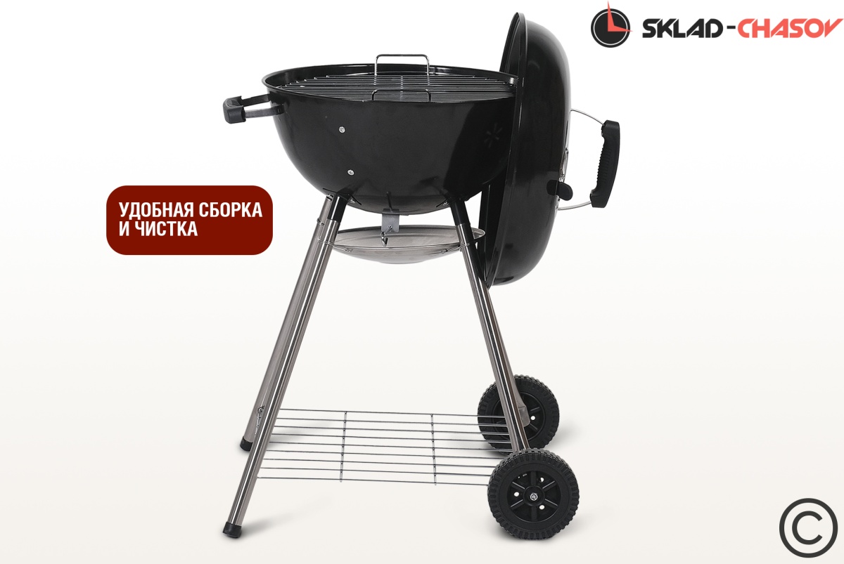 Модель обладает компактным размером, легкостью, а благодаря наличию колес гриль можно БЕЗ ТРУДА перемещать. При желании можно быстро отсоединить ноги гриля и перевезти гриль в автомобиле к месту отдыха.