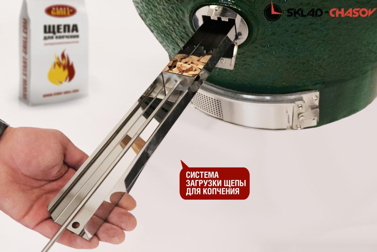 Start Grill SG 24 CFG CHEF PRO имеет в своем арсенале удобную и эффективную систему подачи щепы CFG. Эта система представляет собой открывающийся отсек в корпусе гриля, направляющий лоток и толкатель. Теперь нет необходимости убирать продукты с решетки для приготовления, снимать саму решетку, чтобы загрузить дополнительную порцию щепы. Система CFG позволяет добавить щепу за считанные секунды, не открывая крышки гриля.