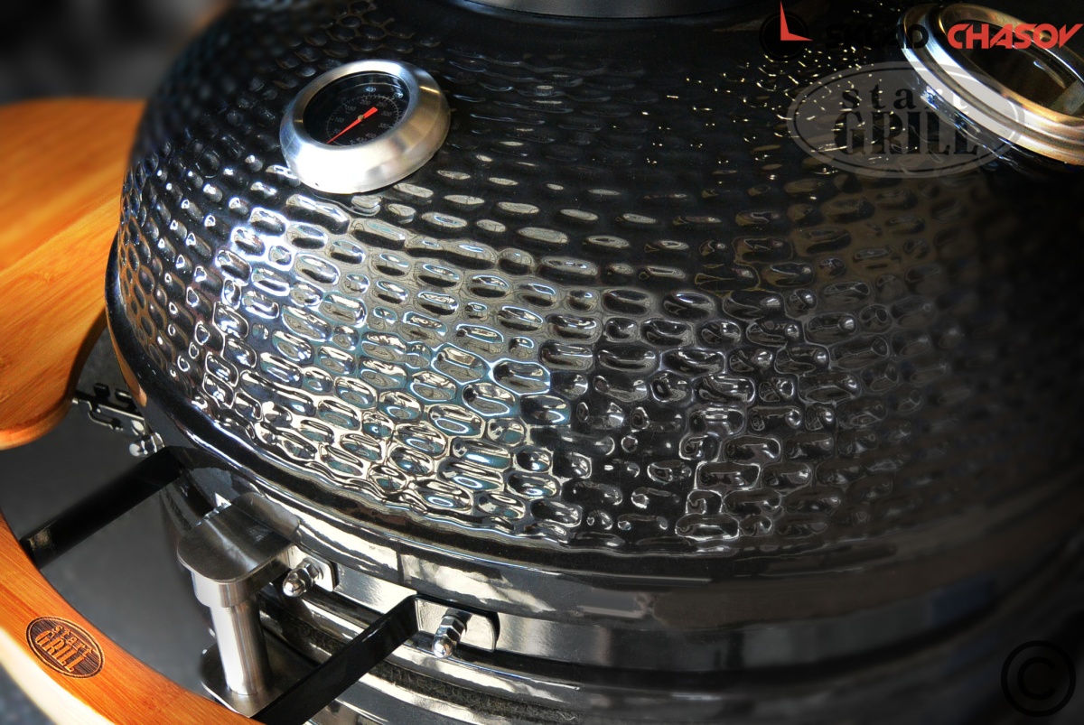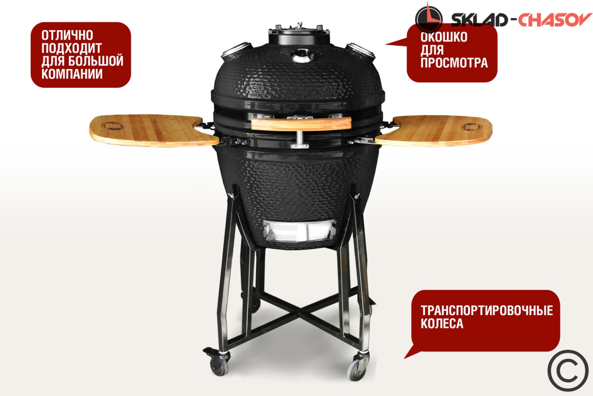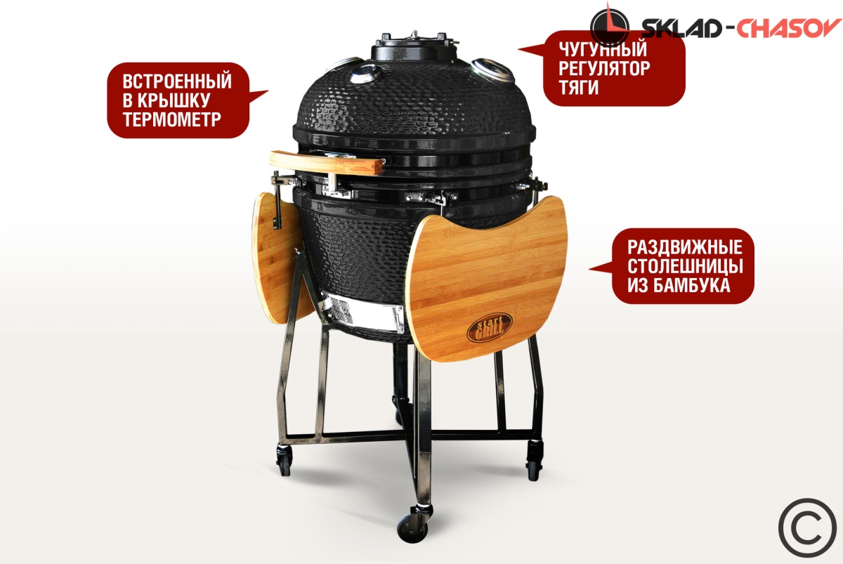 Керамический гриль со стеклянным окошком Start Grill 22. Модель одновременно сочетает в себе функции гриля, барбекю, мангала, коптильни, духовки, печи для пиццы и тандыра. Гриль выполнен из экологически чистой толстостенной керамики и очень прост в использовании, потребуется совсем немного времени, чтобы подготовить его к работе и начать готовить настоящие кулинарные шедевры.