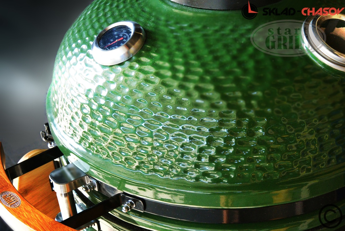 Керамический гриль со стеклянным окошком Start Grill 22. Модель одновременно сочетает в себе функции гриля, барбекю, мангала, коптильни, духовки, печи для пиццы и тандыра. Гриль выполнен из экологически чистой толстостенной керамики и очень прост в использовании, потребуется совсем немного времени, чтобы подготовить его к работе и начать готовить настоящие кулинарные шедевры.
