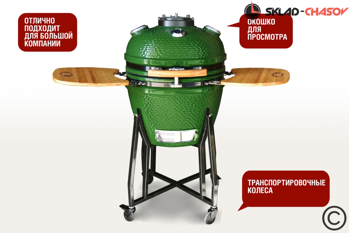 Керамический гриль-барбекю с окошком 22 дюйма (зеленый) (57см)