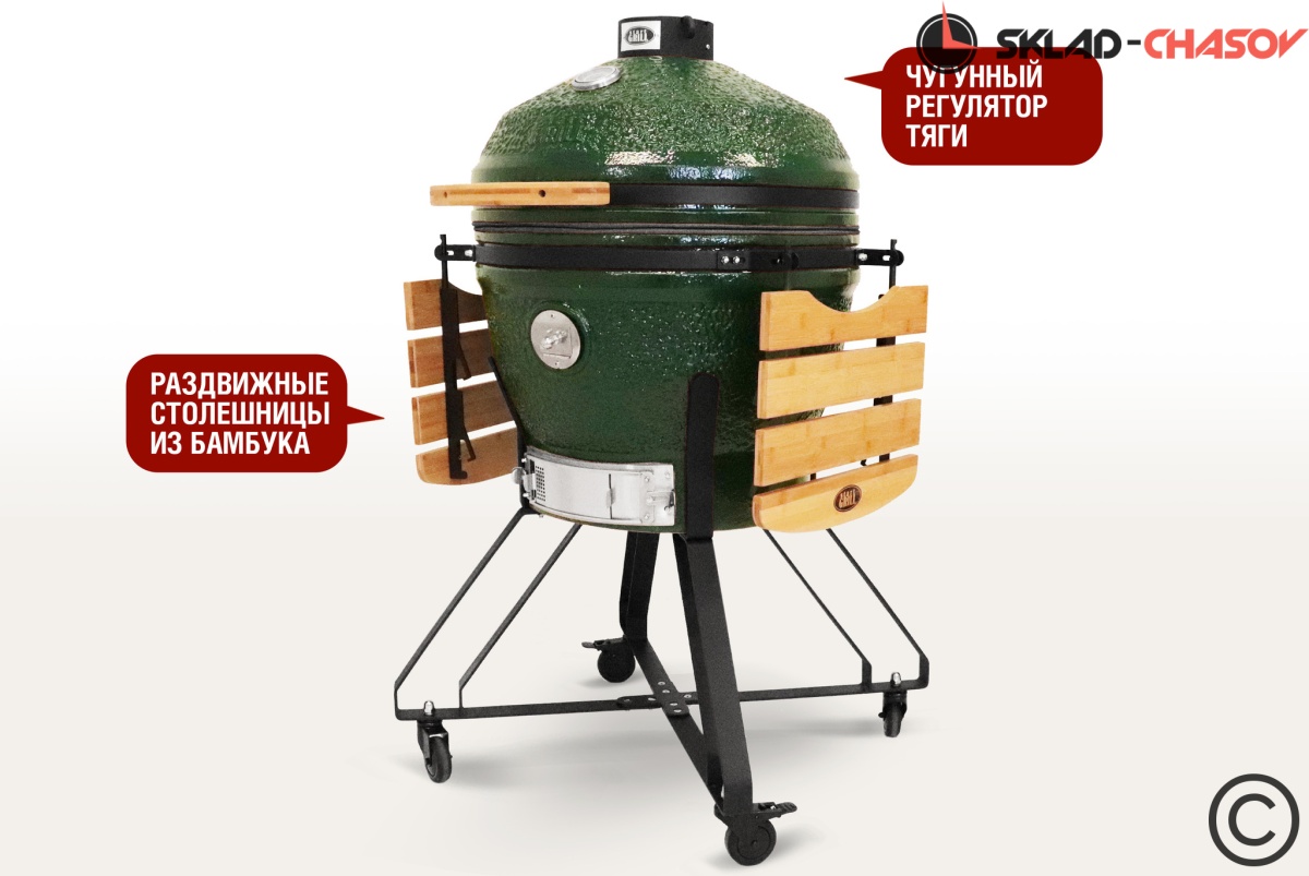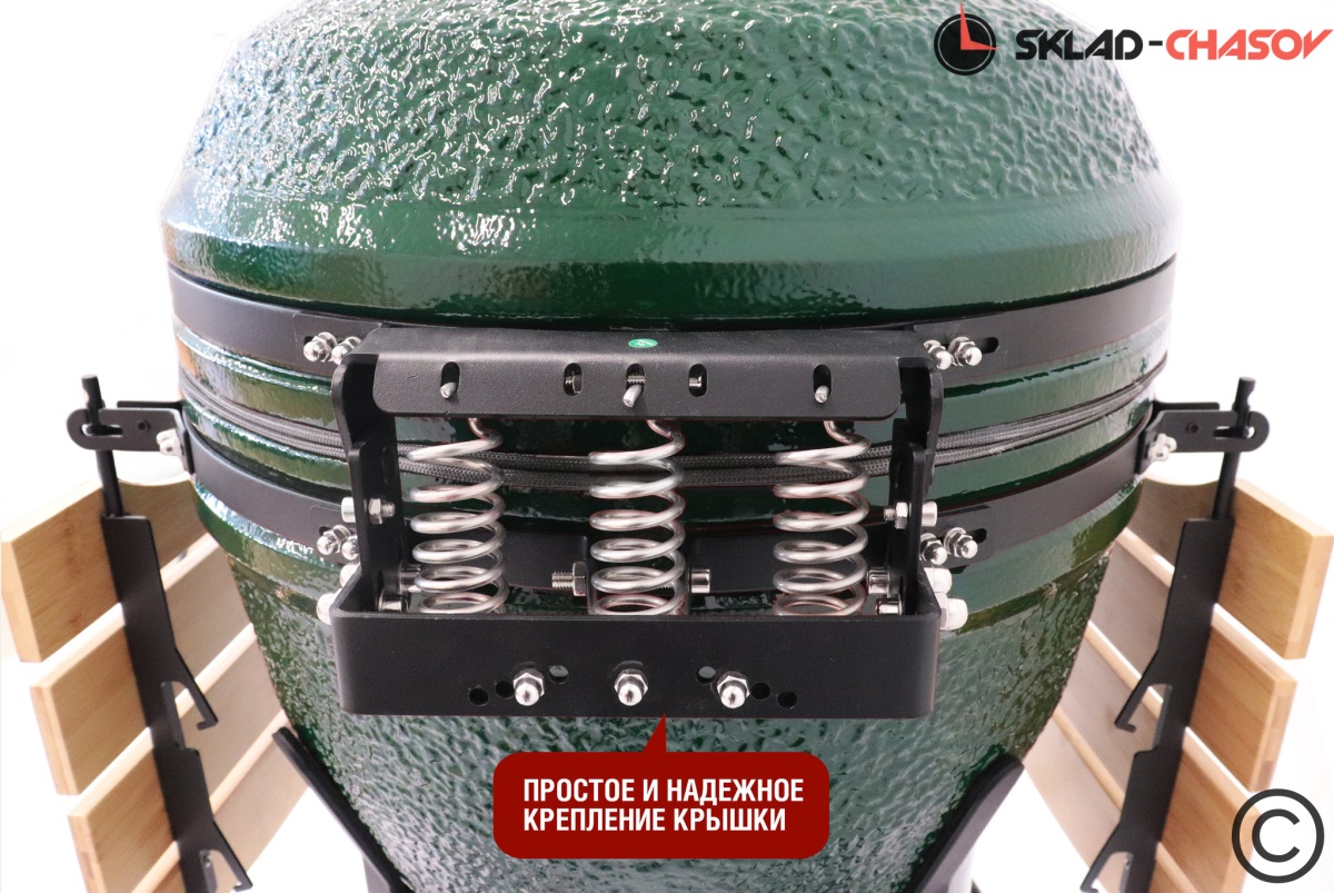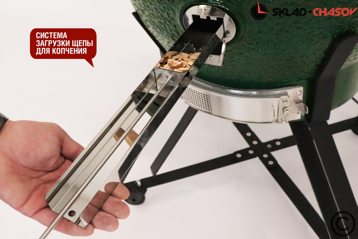 Данная модель гриля подойдет многим, но акцент делается для профессионалов. Имея большой размер, устройство для подачи щепы, улучшенный состав керамики этот гриль станет незаменимым инструментом для кейтеринга, баров, ресторанов, BBQ зон.