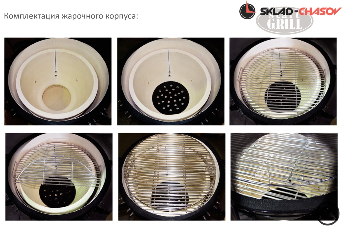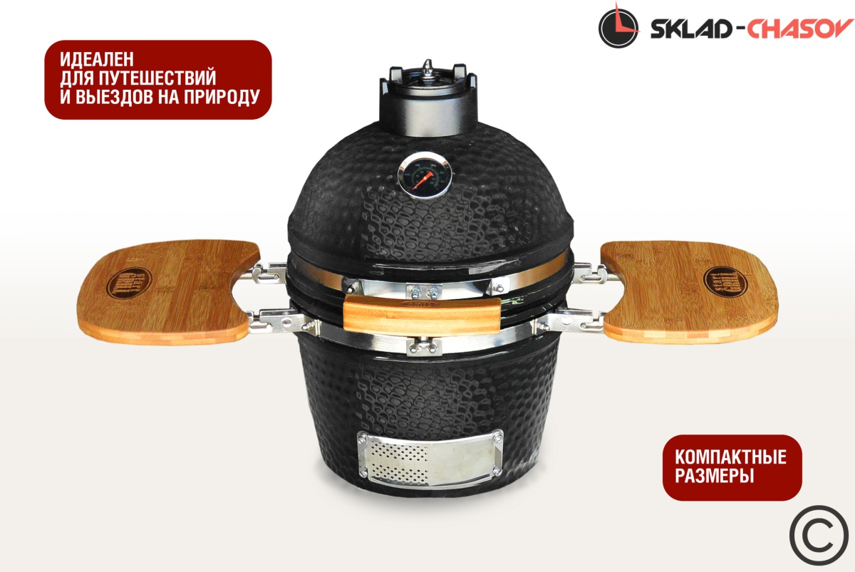 Керамический гриль SG 12 от Start Grill черного цвета – это компактная модель, которая одновременно сочетает в себе функции гриля, барбекю, мангала, коптильни, духовки, печи для пиццы и тандыра.