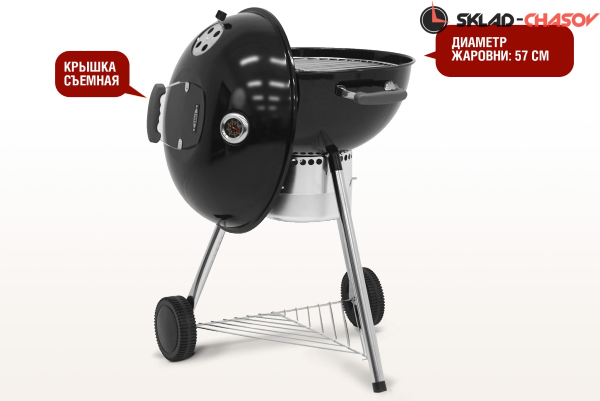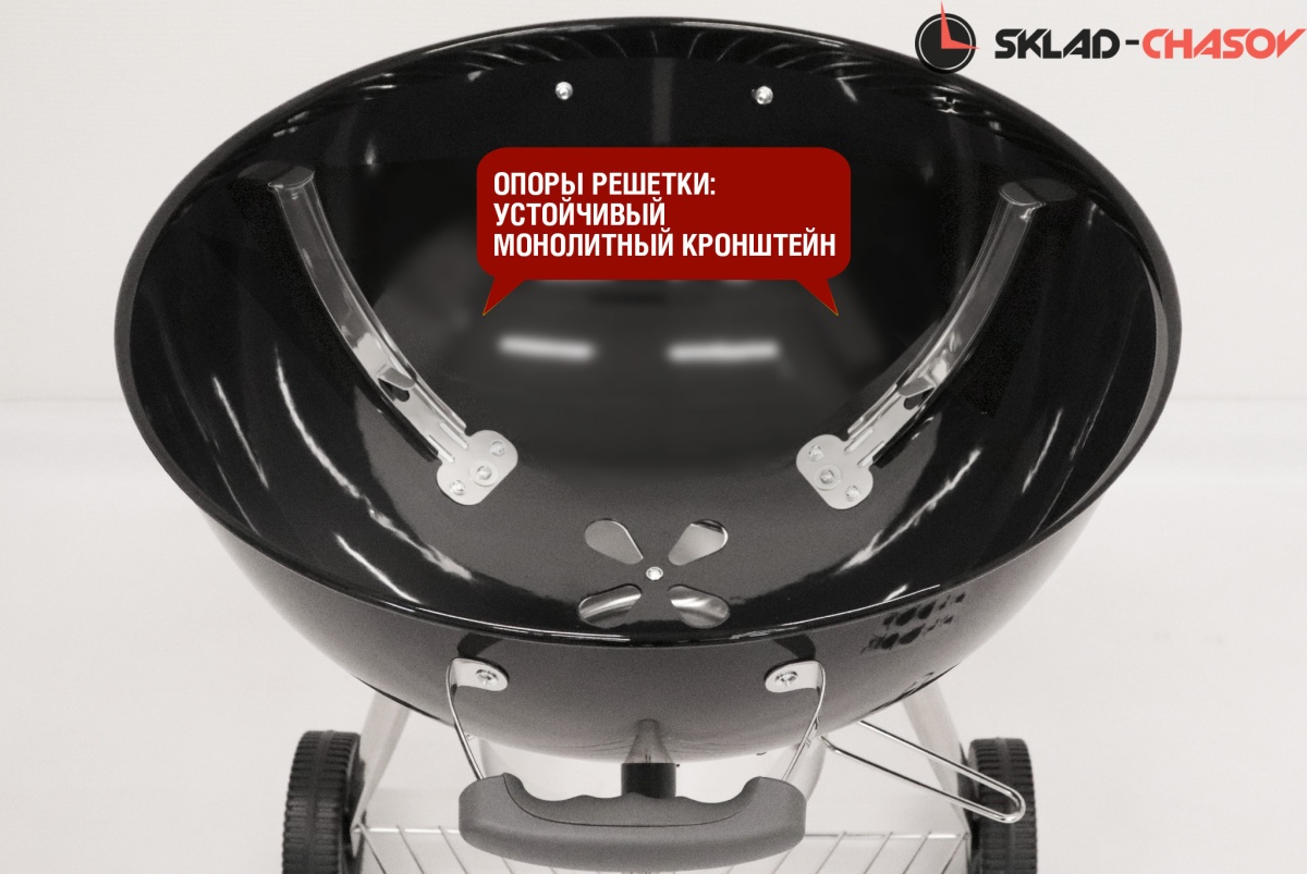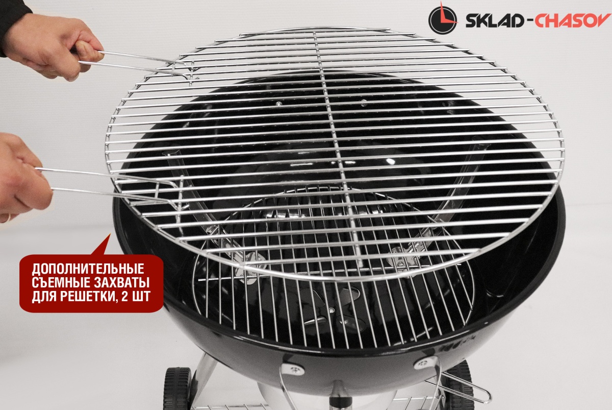 Гриль оснащен монолитными устойчивыми опорами колосника и решетками для приготовления. В комплекте поставки предусмотрены два захвата решетки для быстрого и безопасного снятия.