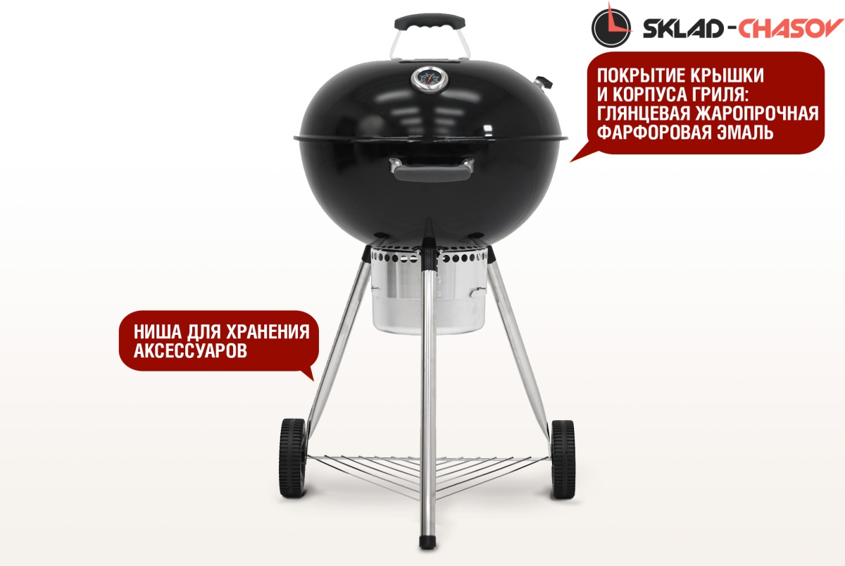 Модель оснащена большими транспортировочными колесами для удобного перемещения, а также функциональной нишей для хранения различных аксессуаров.