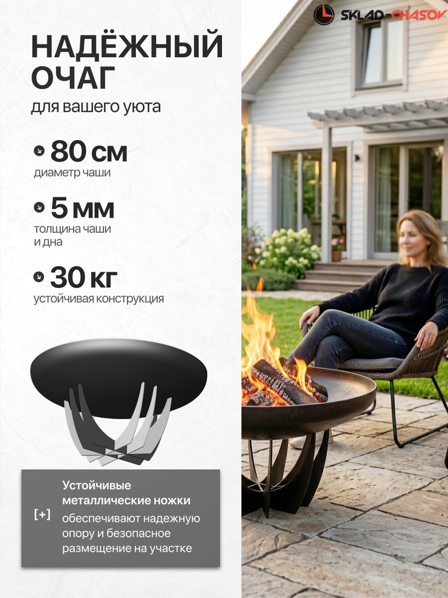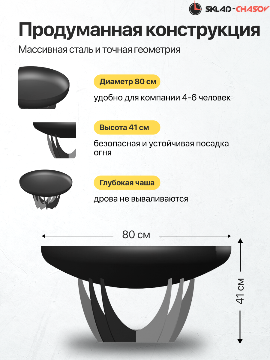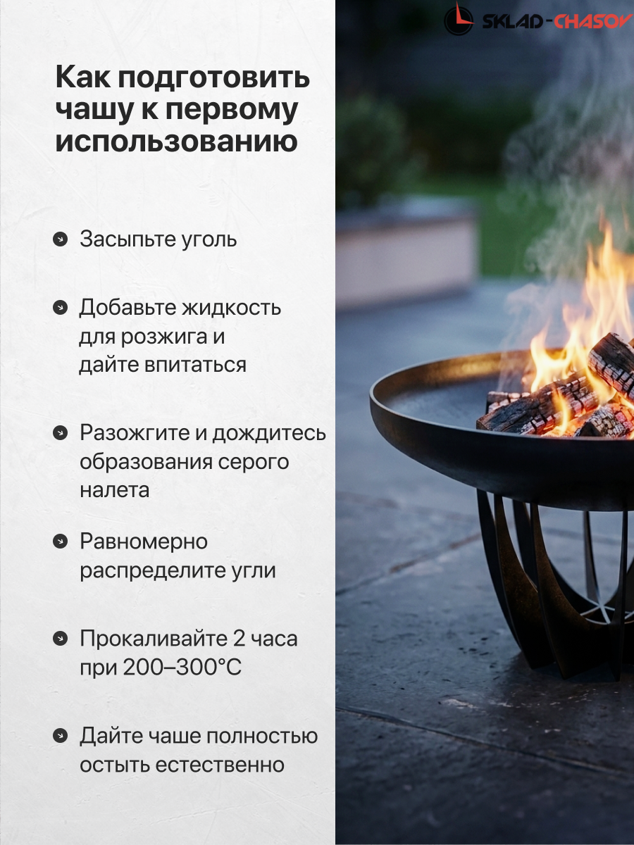 Наша продукция отличается непревзойденным функционалом. Глубокая форма чаши создана не только для красивого пламени, но и для удобного приготовления пищи. Это идеальный выбор для тех, кто ценит практичность.