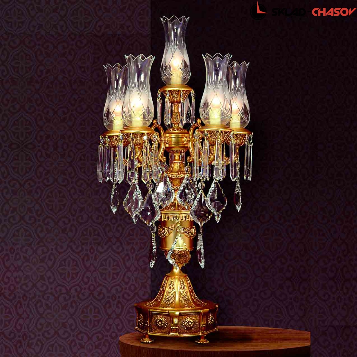 Бронзовый светильник Mahdi TL188/5+1 станет прекрасной покупкой для себя или в подарок. Вы можете установить ее на прикроватный столик, комод или любую другую поверхность. Она создаст приглушенный, романтичный свет в помещении. Форма основного элемента — цилиндр — сделает его более оригинальным. Вид рассеивателя — плафон. Цвет корпуса — золотой, цвет плафонов — прозрачный. Материал корпуса представленной модели — Бронза. Количество ламп —не указано. Мощность каждого источника света составляет 40. Материал плафона — стекло. Общая высота источника света составляет 780 мм, диаметр — 450 мм. Светят плафоны вверх, что благоприятно для глаз и общего восприятия комнаты. Тип осветительного прибора — не указано. Поверхность плафонов — глянцевая. не указано заметно преобразятся с таким источником света. Особенности исполнения: не указано. Страна производства источника света — Иран. Бренд — Mahdi Luster . Установленная степень защиты — IP20.
