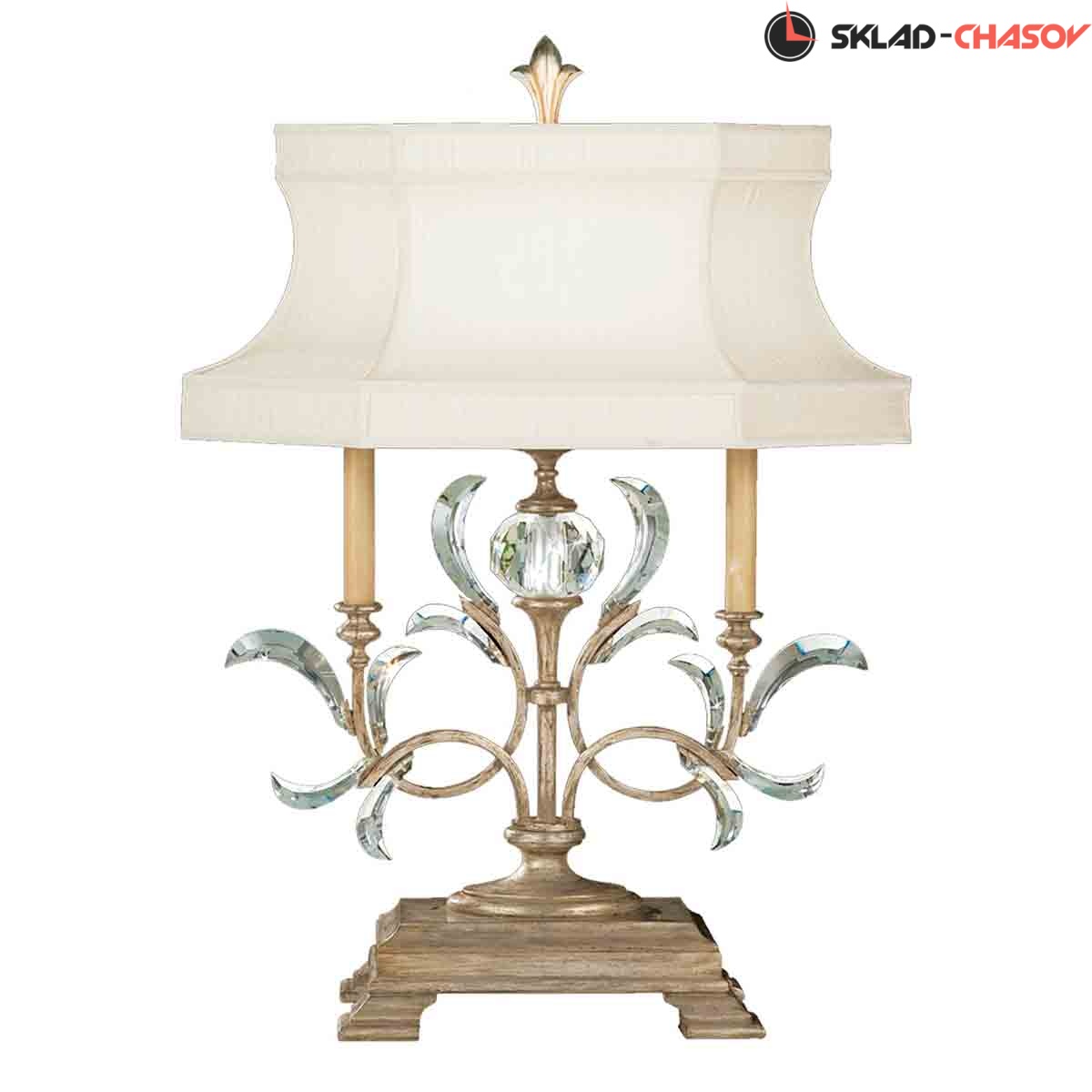 Хрустальный светильник Mahdi L416/02 — красивый и функциональный предмет. С ним интерьер становится более праздничным, а сама комната более светлой и уютной. Материал корпуса — Латунь — делает источник света долговечным. С течением времени прибор не утрачивает своих характеристик. Плафоны светят вверх, что благоприятно для глаз. Их цвет — белый, а форма — полукруг. Поверхность плафонов матовая. Основной материал — ткань. Вид ламп — накаливания. Цвет корпуса представленной модели серебряный. Общая высота составляет 860 мм, а диаметр — 580 мм. Количество ламп — не указано. Цвет свечения — не указано. Цоколь — E27. Вид рассеивателя — абажур. Среди особенностей представленной модели можно отметить: не указано. Страна производства — Иран. Бренд лампы — Mahdi Luster .