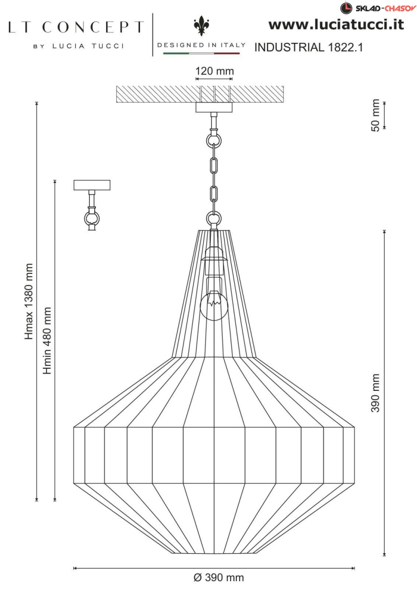 Lucia Tucci Industrial Industrial 1822.1 обеспечит качественное освещение пространства. Представленное осветительное оборудование станет надежным