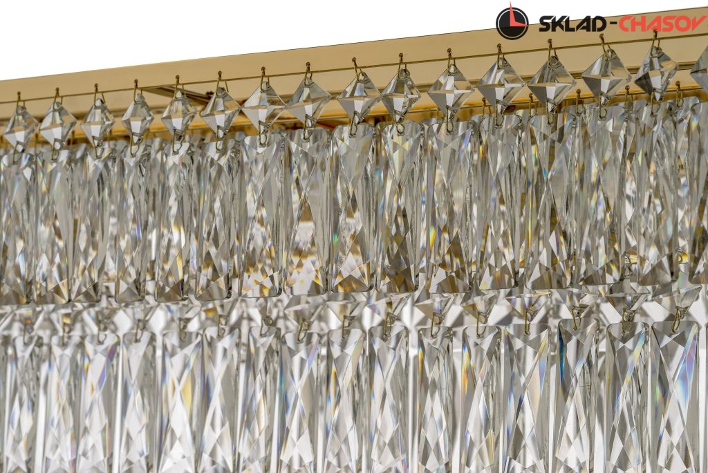 Люстра Acquaro E 1.5.120×30.100 GP можно определить как современный с элементами гламура и арт-деко. Хотя она и использует традиционные материалы – металл и хрусталь – ее дизайн далек от классических форм.