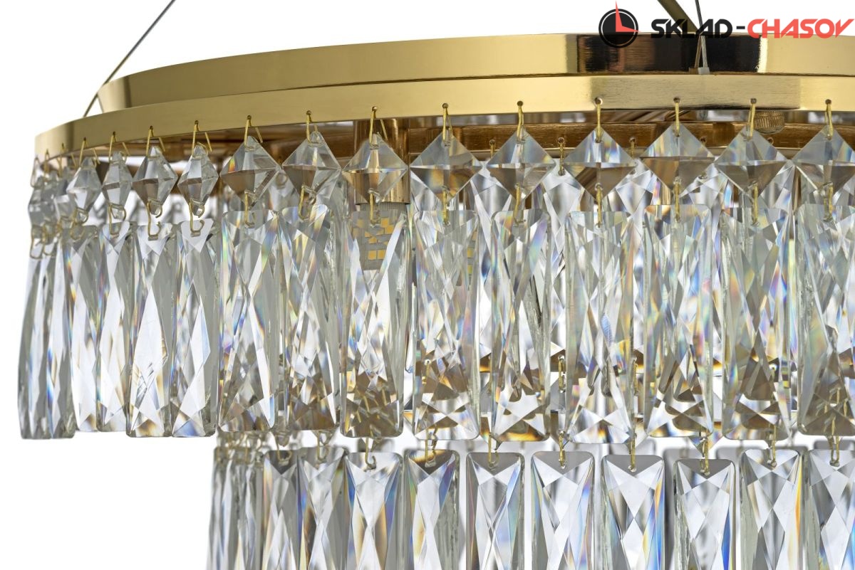 Арматура люстры выполнена из металла, что гарантирует долговечность и устойчивость конструкции. Цветовое оформление арматуры в золотом цвете, придаёт люстре изысканность и шик.