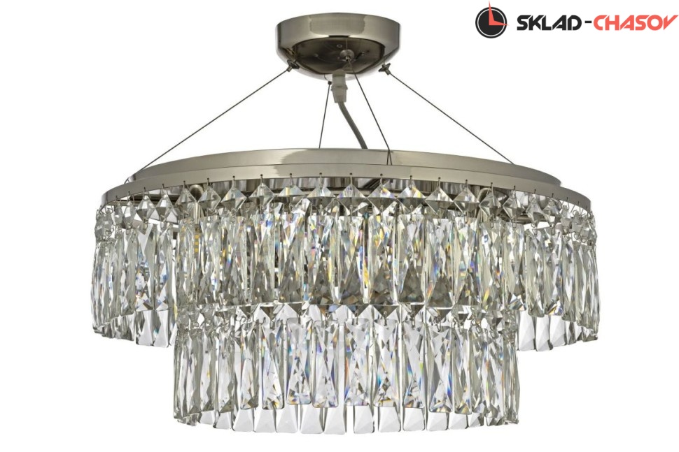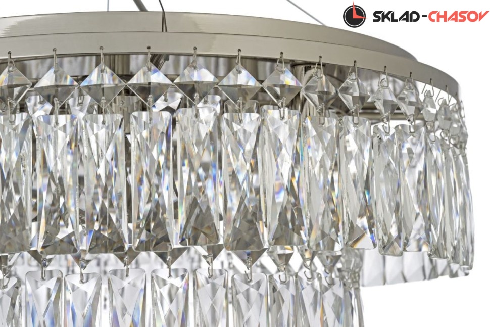 Арматура люстры выполнена из металла, что гарантирует долговечность и устойчивость конструкции. Цветовое оформление арматуры в цвете никеля, создаёт эффектный и современный дизайн.