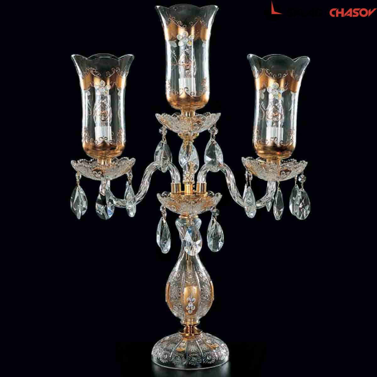 Светильник настольный Elite Bohemia S 687/2+1/02 T — красивый и функциональный предмет. С ним интерьер становится более праздничным, а сама комната более светлой и уютной. Материал корпуса — латунь — делает источник света долговечным. С течением времени прибор не утрачивает своих характеристик. Плафоны светят вверх, что благоприятно для глаз. Их цвет — прозрачный, а форма — ваза. Поверхность плафонов не указано. Основной материал — хрусталь. Вид ламп — накаливания.