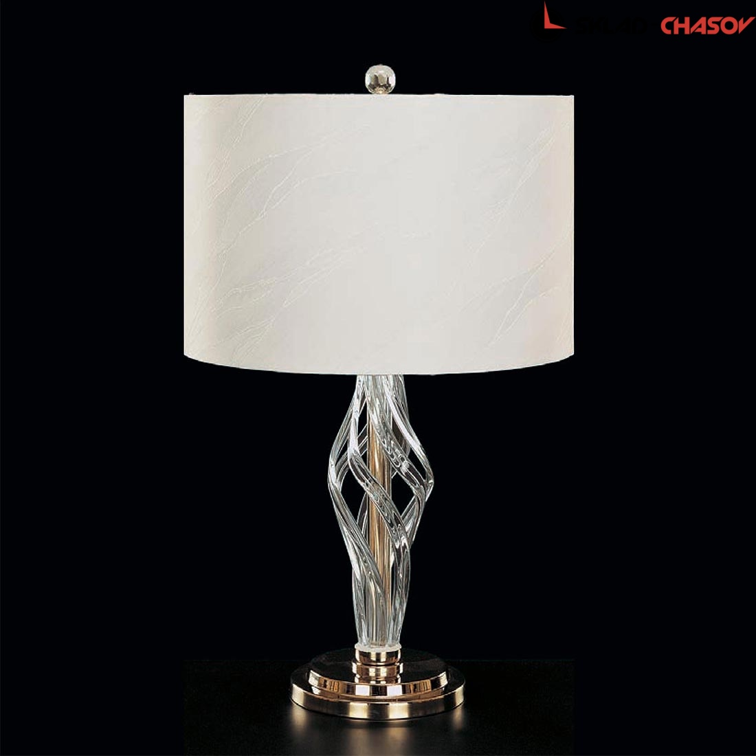 благодаря изящной ножке с декоративными элементами из прозрачного стекла настольный светильник выглядит настоящим произведением искусства;