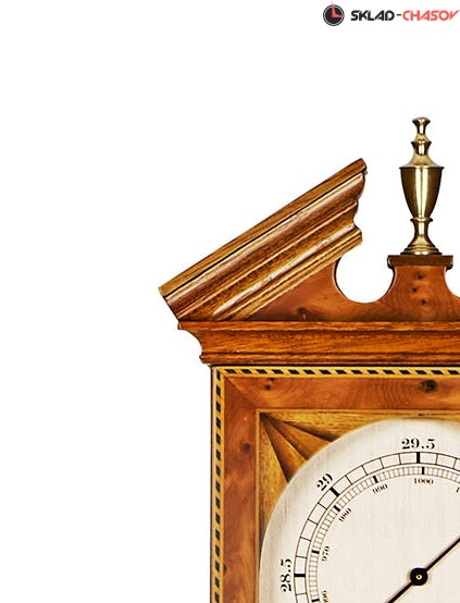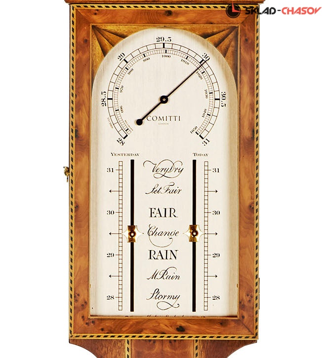 Циферблат, отделанный серебром, откалиброван в дюймах и миллибарах