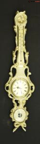 Барометр “Людовик XVI”, покрытый светлым лаком цвета Слоновой Кости и позолоченный, с термометром, кварцевыми часами, барометром