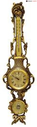 Барометр Crequelè “Louis XVI”, черный с позолотой, с термометром, кварцевые часы, Барометр