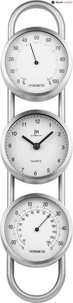 Кварцевые настенные часы с термометром и гигрометром в алюминиевом корпусе.