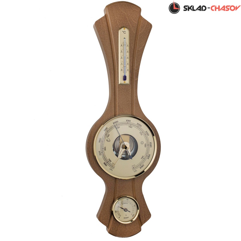 Механическая метеостанция, состоящая из барометра, термометра и гигрометра. Корпус из массива дерева.
