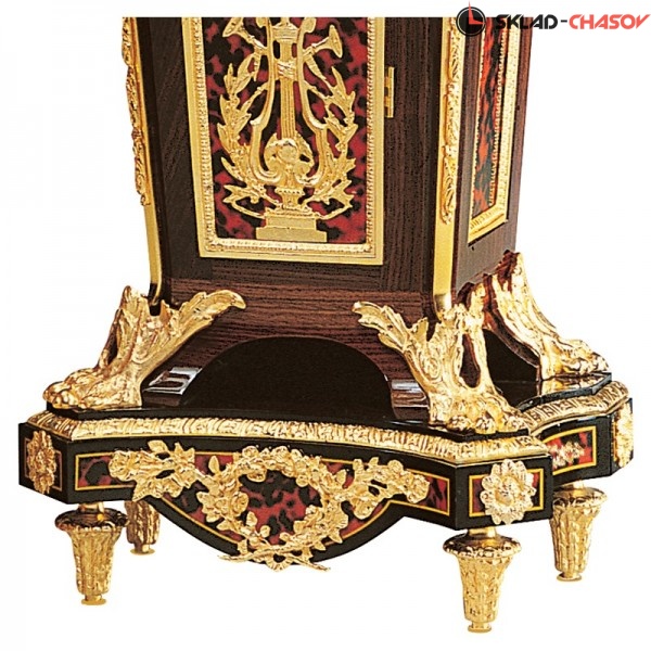 Эти часы воспроизводят работу французского мастера г-на Була для короля Франции. Существует механизм / драгоценность с 11 рубинами и 3 мелодии, а латунь - золото с 24kt. Существует имитация черепахи, пропитанной красным, чтобы дать больше контраста. Корпус часов выполнен из MDF и покрыт палисандром и с имитацией кожуры черепахи. Передняя и задняя дверцы имеют замок и 2 дверных проема. Отделка блестящая с полиэфиром. Вся латунь расплавляется воском, а затем золоченая, она не печатается!3 мелодии: Wesminster, San Michele и Whittington. Есть режим автоматического отключения боя с 22 до 7:15, и вы можете также поворачивать минутную стрелку против часовой стрелки. Есть 11 натуральных рубинов