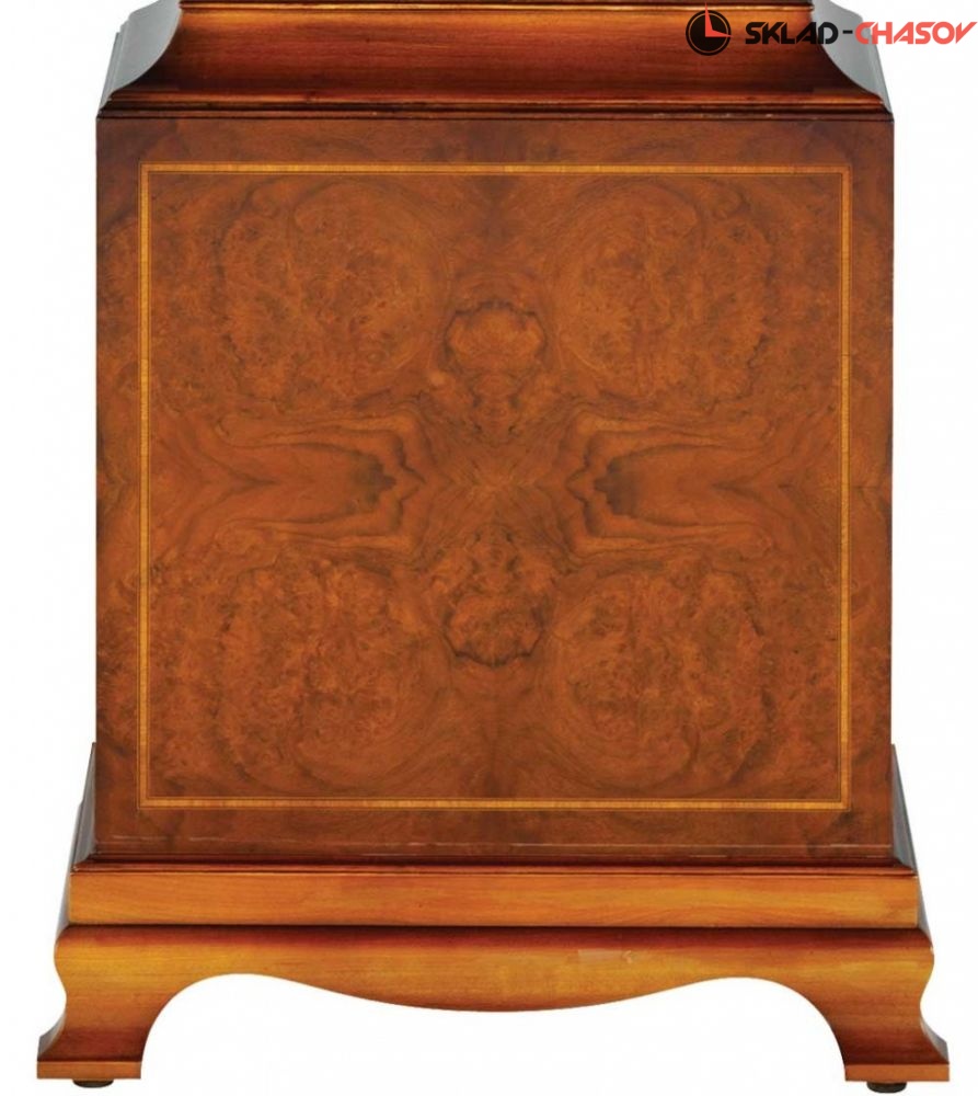 Арочный шкаф в георгианском стиле, типичный для работы лондонского мастера Уильяма Вебстера, около 1710 года. Шкаф Chatsworth украшен шпоном орехового дерева в тон книге, инкрустированным атласной окантовкой. Корпус украшен рифлеными четвертными колоннами на корпусе и "коринфскими" колоннами на капоте. Корпус украшен изящной резьбой и латунными шпилями-навершиями. Циферблат из цельной латуни украшен стрелками в виде херувимов, серебряным кольцом с надписью "Глава", лунным циферблатом ручной росписи и синими лакированными стрелками. Корпус вручную протерт и натерт воском для придания ему "античного" оттенка.