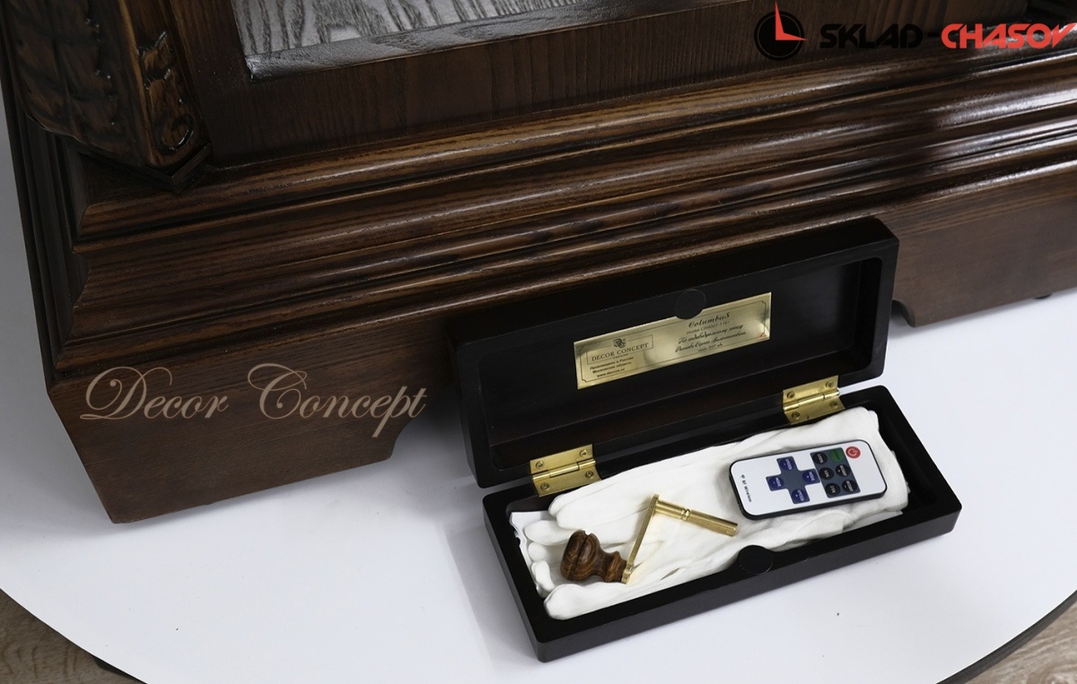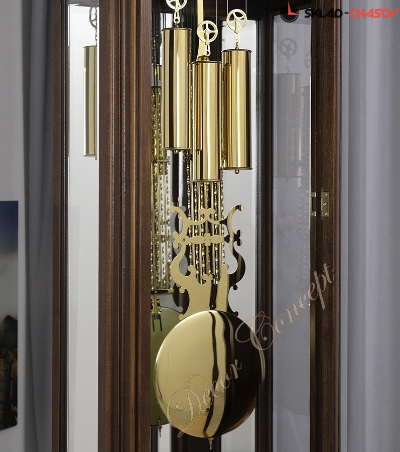 Тонирование корпуса напольных часов выполнено в цвете темный орех.