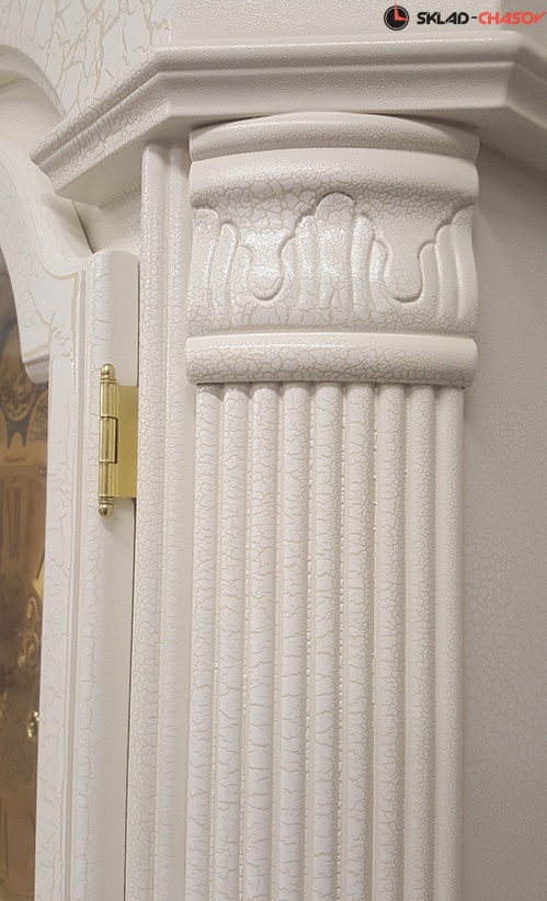 Корпус декорирован резными, массивными колоннами с каннелюрами вдоль боковых поверхностей. Колонны расположены с уклоном, что дает дополнительную возможность размещения часов в интерьере в качестве угловых;