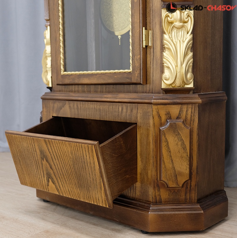 Выдвижной ящик в основании часов предназначен для хранения аксессуаров;