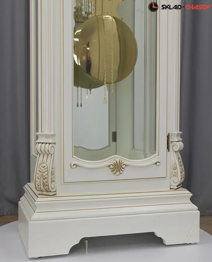 Позолоченные маятник и гири завершают декоративный ансамбль часов;