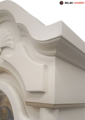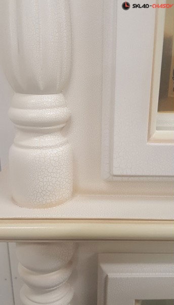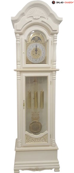 Columbus. Напольные часы выполнены из массива дерева в белом цвете с отделкой кракелюр. Над циферблатом расположен механизм, имитирующий лунный календарь. Корпус украшен арочным фронтоном с резными элементами. Крупногабаритный товар.