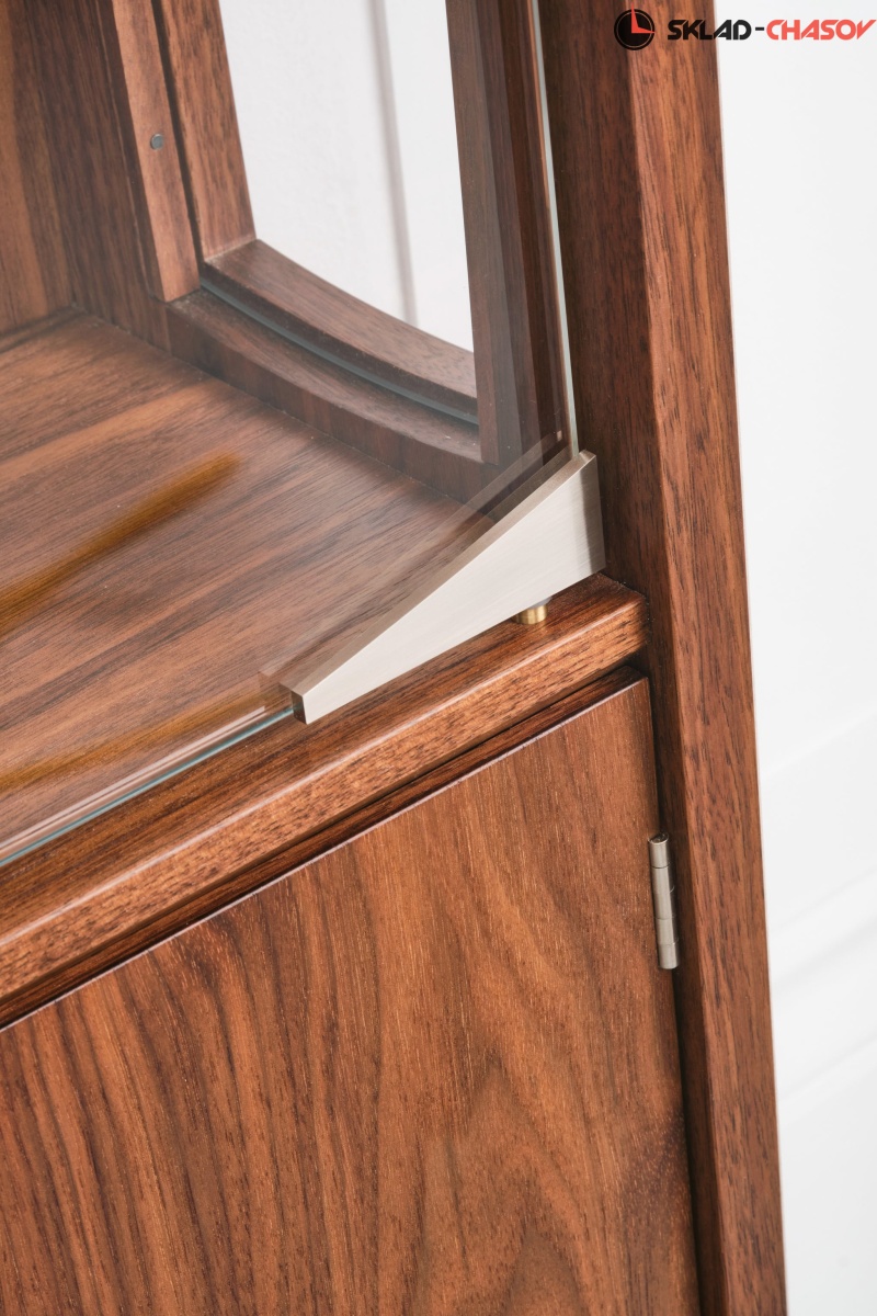 Уникальные напольные часы ограниченной серии, созданные нашим дизайнером Эдмундом Баркером. Дизайн вдохновлен его работой подмастерьем в знаменитой мастерской Эдварда Барнсли во Фроксфилде, и на каждом изделии стоит клеймо его создателя. Шкаф ручной работы в современном стиле создан с использованием отборных пород дерева и отделан таким образом, чтобы подчеркнуть красивую фактуру древесины. Механизм bell strike и фурнитура из нейзильбера с зернистой отделкой со всех сторон защищены минеральным стеклом.