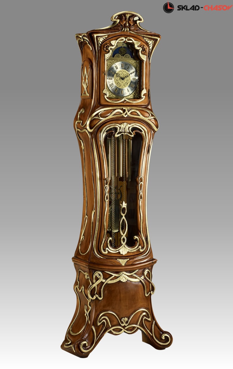 часы в стиле Либерти, ручная резьба по дереву, орех с позолотой.