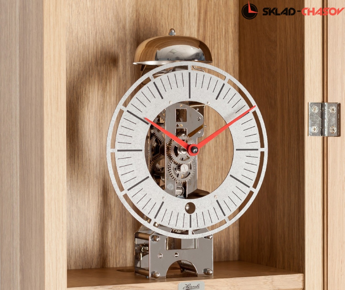 Дизайнерские напольные часы-скелетон. с никелированным механизмом 0791 на тросовом подвесе гири, имеющий 8-ми дневный запас хода. Бой каждый час - один удар в колокол. Бой не отключается!