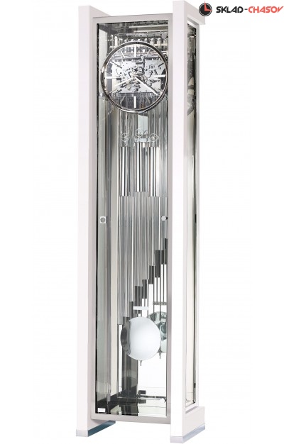 Решетчатый маятник, отделанный полированным хромом, прекрасно вписывается в линейный дизайн этих часов.