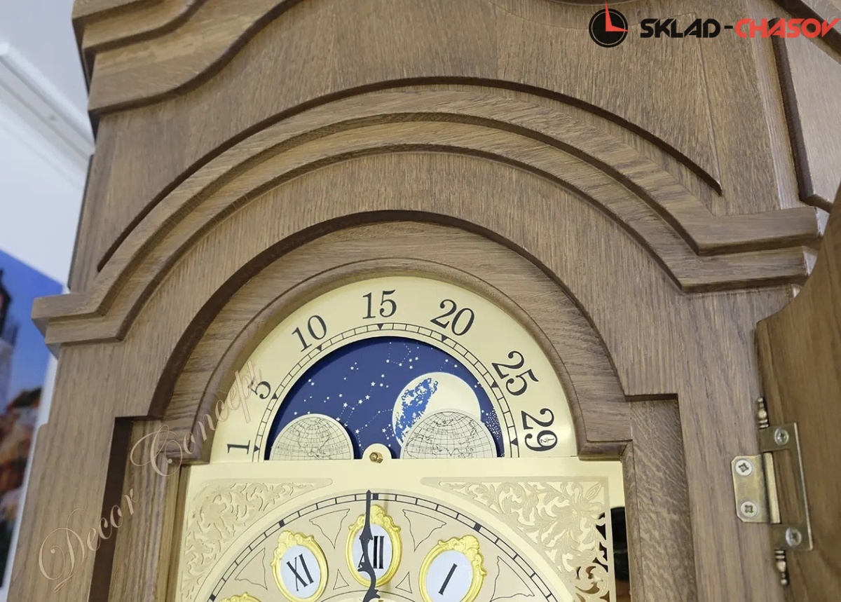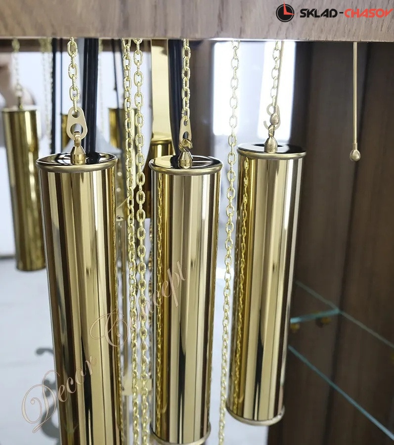 Механизм Hermle-451 с цепным подвесом гирь, мелодия каждые 15 минут с нарастанием времени звучания;