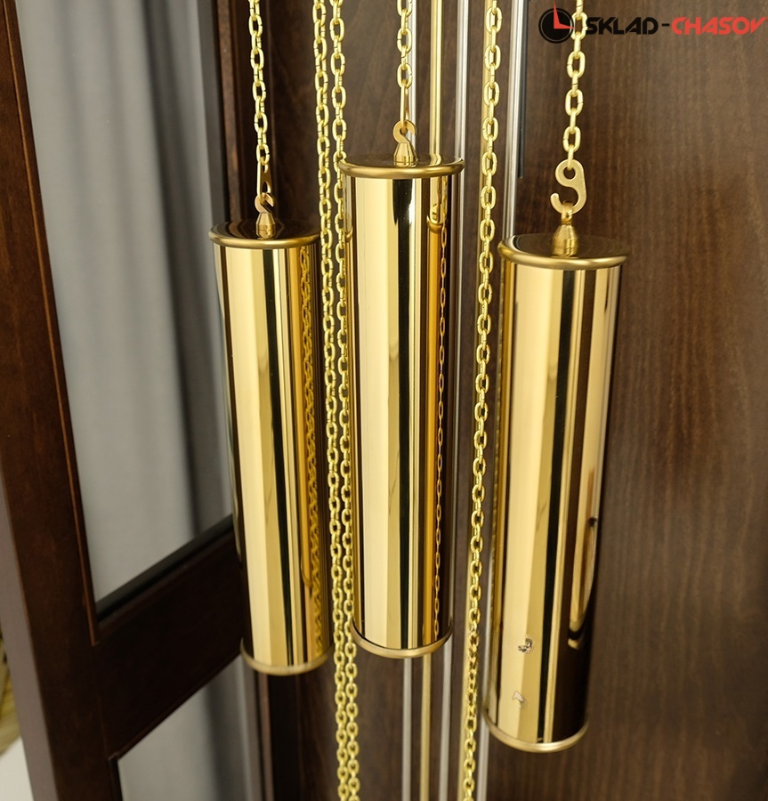 Механизм Hermle-451 с цепным подвесом гирь, мелодия каждые 15 минут с нарастанием времени звучания;