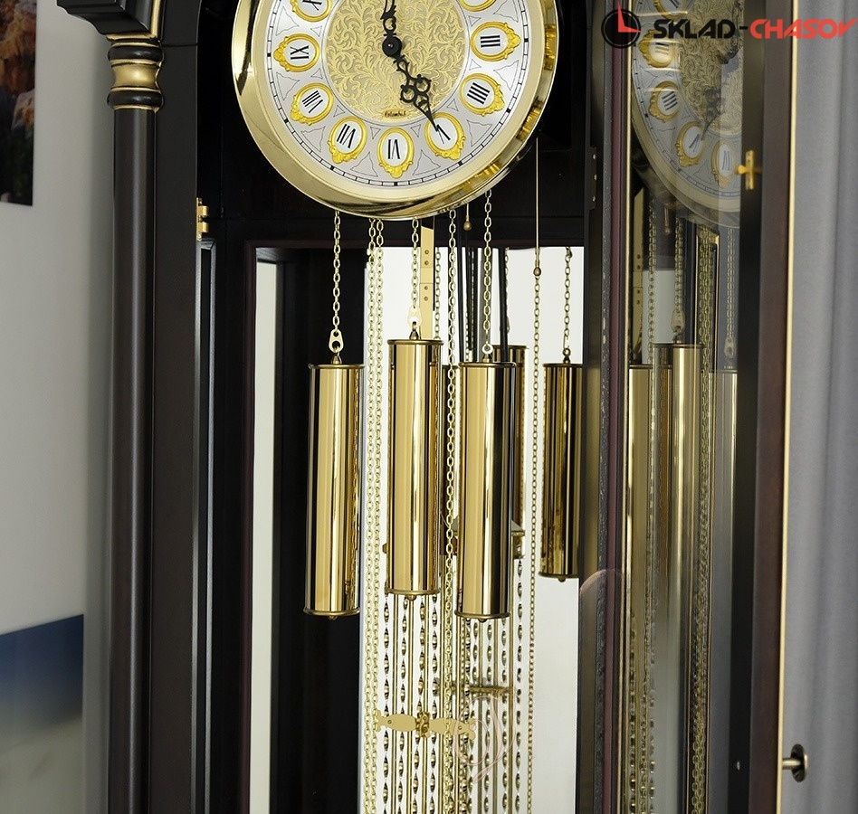 Механизм Hermle-451 с цепным подвесом гирь, мелодия каждые 15 минут с нарастанием времени звучания;