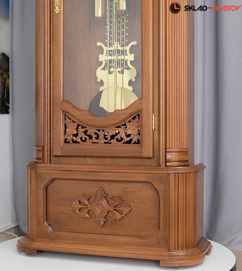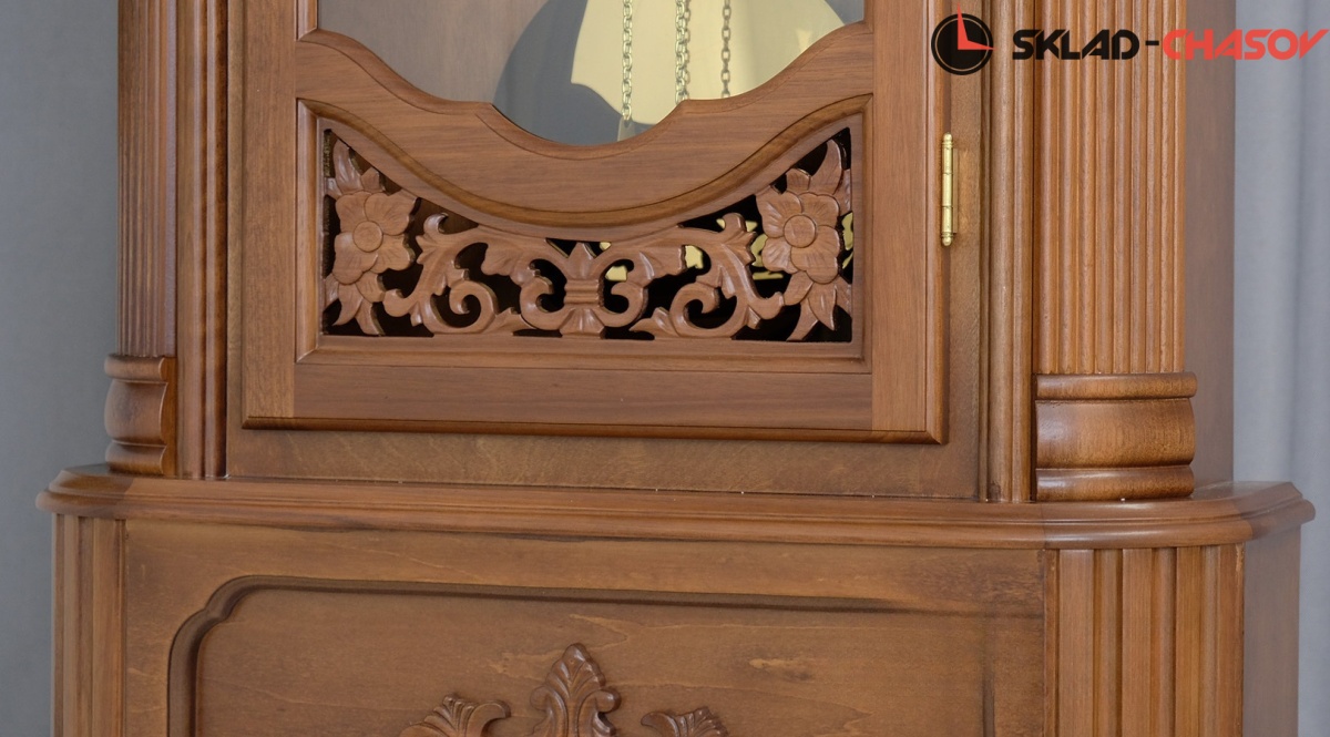 Фасад корпуса и декоративные резные элементы изготовлены из ольхи;