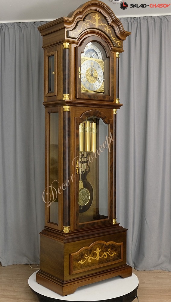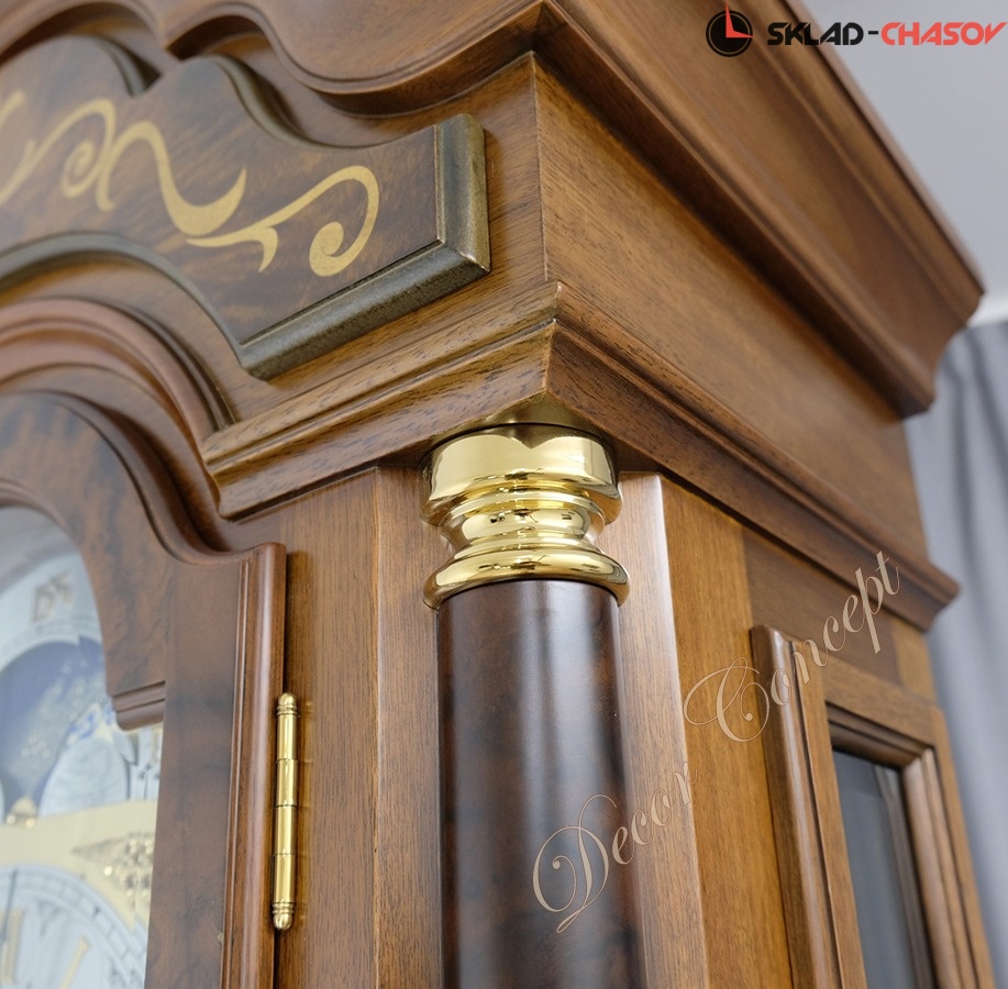 Тонирование деревянного корпуса напольных часов выполнено в цвете - орех;