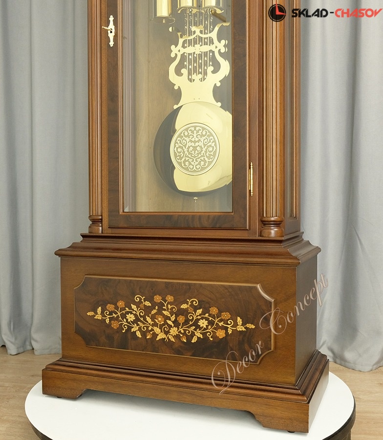 Тонирование деревянного корпуса напольных часов выполнено в цвете - орех;
