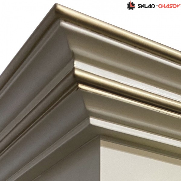 Циферблат из полированной латуни, с тисненым узором по центру и тиснеными надсводными уголками, с римскими цифрами .