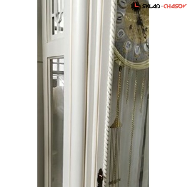 Массив липы, ручная резьба. Часы механические. Цвет: слоновая кость с патиной золото. Циферблат с римскими цифрами, Маятник + подвесные гири 3 - штуки 31-дневный мощный механизм с функцией отключения, стеклянная боковая стенка.Размер :Размер: 1940*630*290 мм. Размер упаковки: 1990*700*360 мм